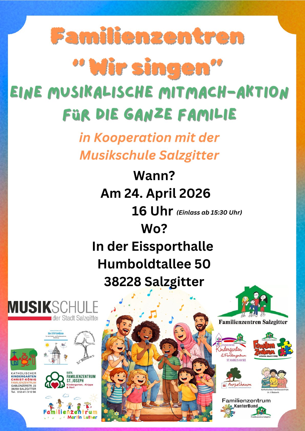 Gern weisen wir auf eine Singveranstaltung für die ganze Familie in der Eissporthalle hin! Wir Sängerinnen und Sänger aus den Chören Salzgitters wünschen euch einen wunderbaren Nachmittag und unterstützen euch durch unsere Anwesenheit!